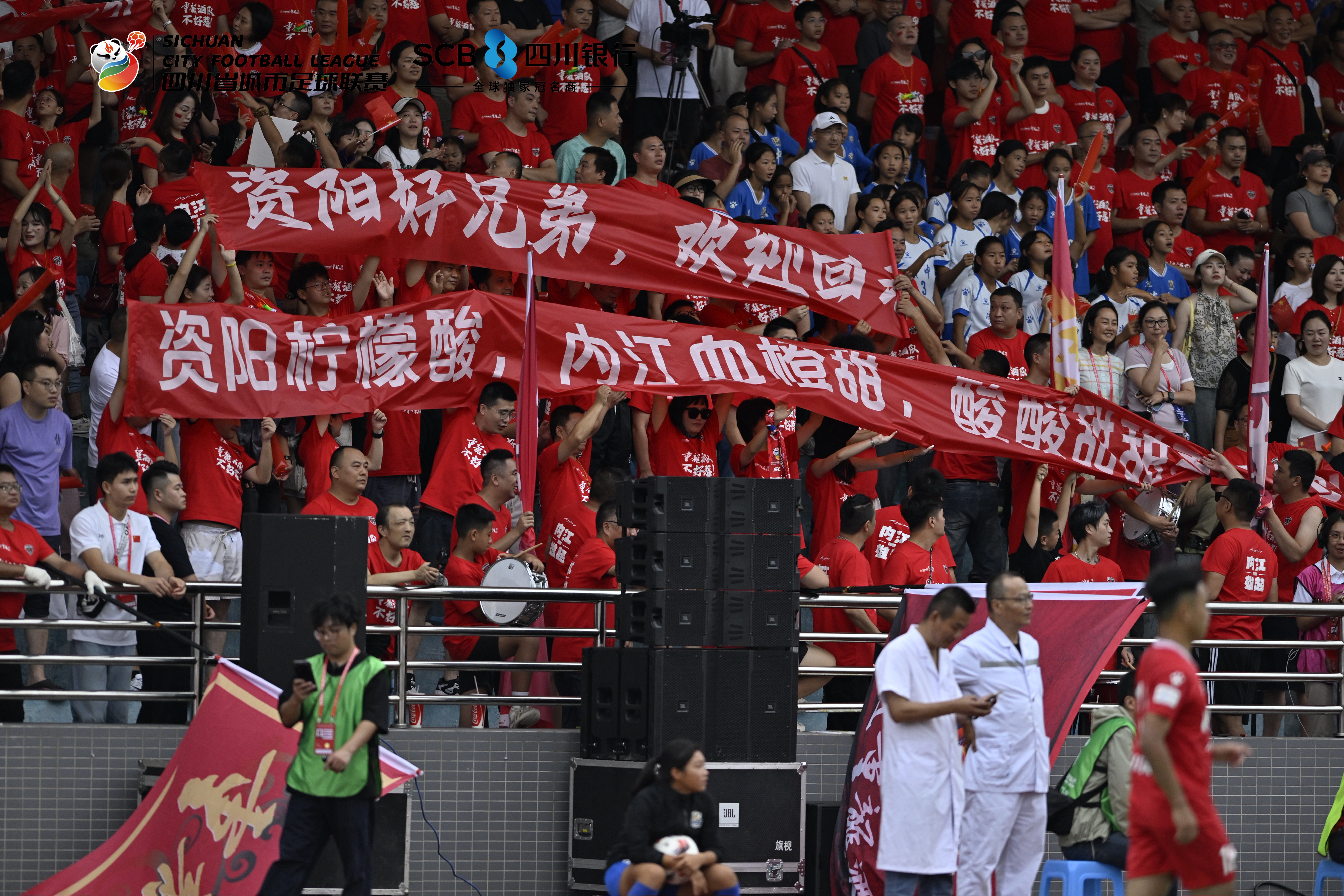 终场哨响,资阳球迷看台区拉出写有“内江、资阳皆兄弟,相亲相爱一家人”的巨大横幅,这场川超赛场的邻里对决,胜负早已被淡忘。